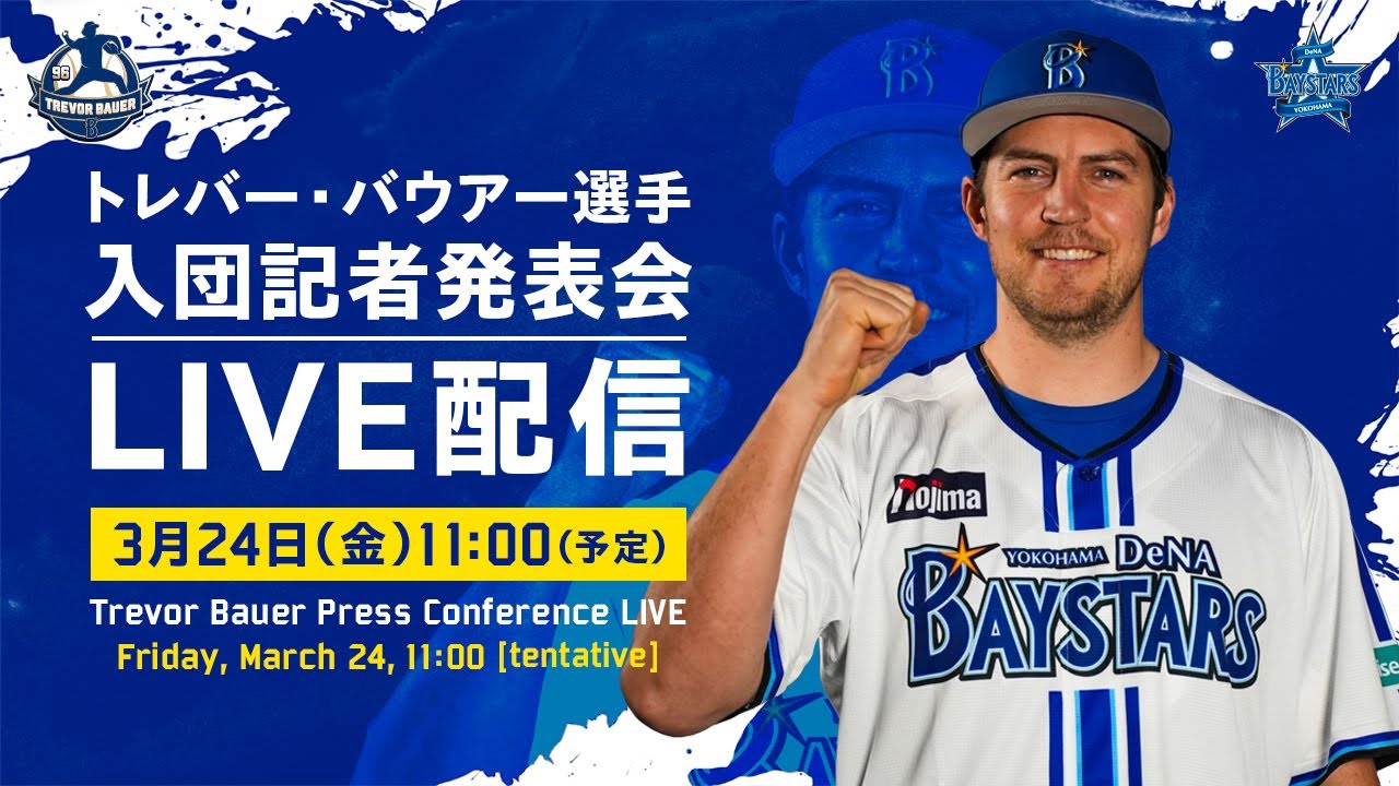 3月24日(金)11時00分より、 新たに入団が決まったトレバー・バウアー選手の入団記者発表会を配信いたします。 We will be broadcasting the Trevor Bauer press conference, who recently joined the team. @TrevorBauerInJapanese @BauerOutage #Bauer #baystars #プロ野球baystarsCENTRAL LEAGUEDeNAOfficial ChannelOfficial VideoYOKOHAMA DeNA BAYSTARSYOKOHAMA DeNA BAYSTARS Official ChannelYOKOHAMA DeNA BAYSTARS Official Videoベイスターズ横浜横浜DeNAベイスターズ横浜スタジアム NPBHUB.COM | The Fanbase of Nippon Baseball & Nippon Professional Baseball