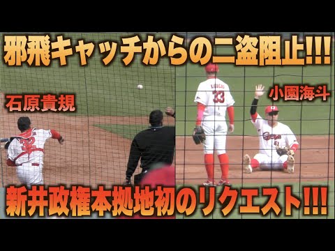石原貴規のファインプレーに小園海斗もアピール!たまらず新井貴浩監督が本拠地初のリクエスト!#広島#カープ#オリックス#バファローズ