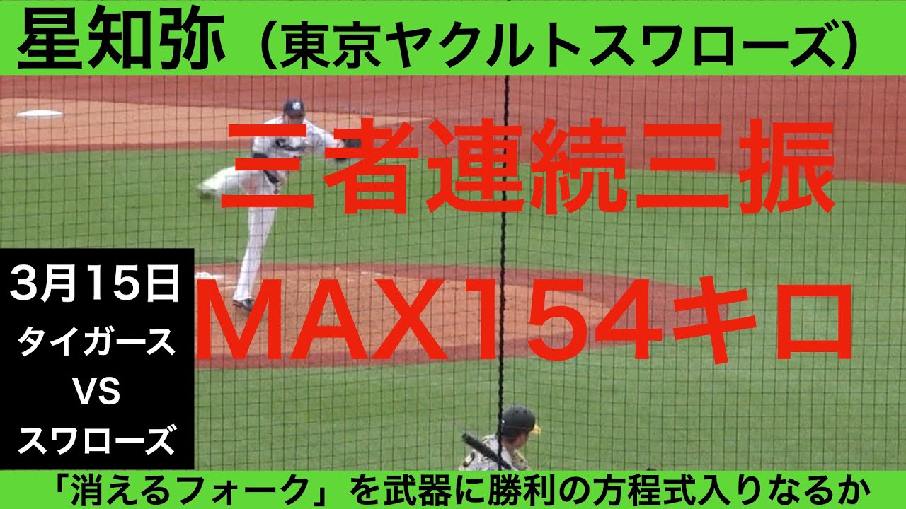 星知弥(東京ヤクルトスワローズ)全球ハイライト 三者連続三振 MAX154キロを計測