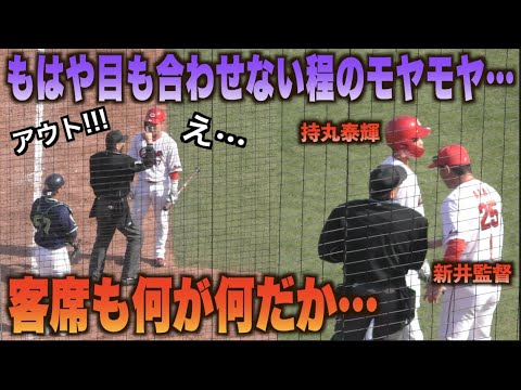 アウト判定に不満…持丸泰輝が守備妨害の判定を受け新井監督が駆けつけるも一直線にベンチ裏に消えてしまう…#広島#カープ#東京#ヤクルト#スワローズ#