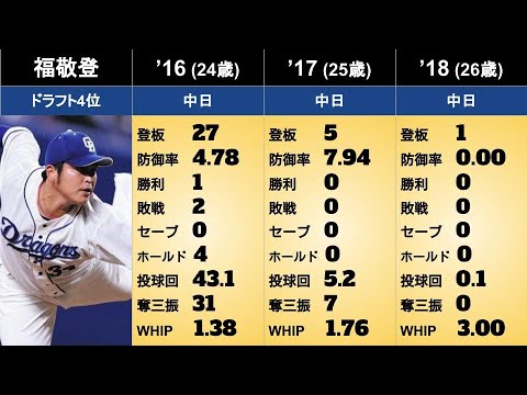 福敬登選手の年度別個人成績をまとめました。(2022年終了時点。年齢は各年の11月末時点)