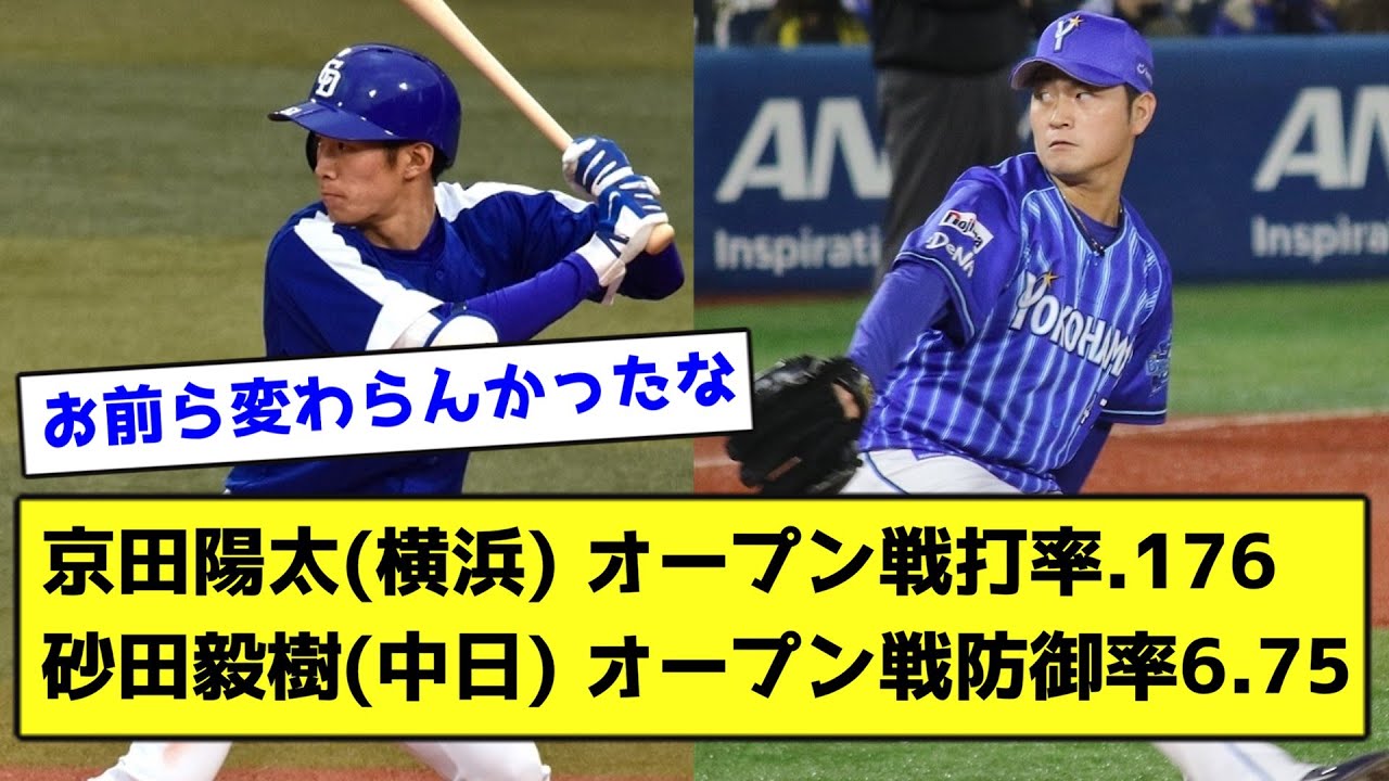 京田陽太(横浜) オープン戦打率.176 砂田毅樹(中日) オープン戦防御率6.75【なんJ反応】
