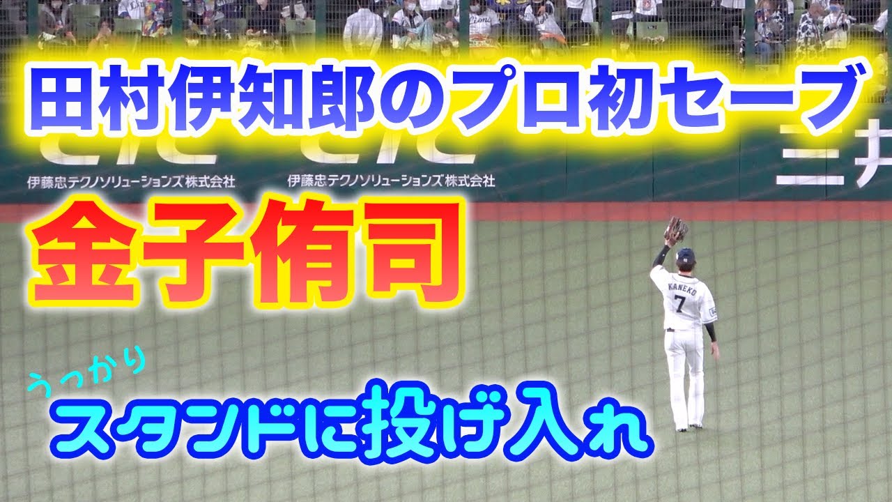 金子侑司選手、田村伊知郎投手のプロ初セーブ記念球をうっかりスタンドに投げ入れてしまい なんとか返してもらう 2021年10月20日撮影