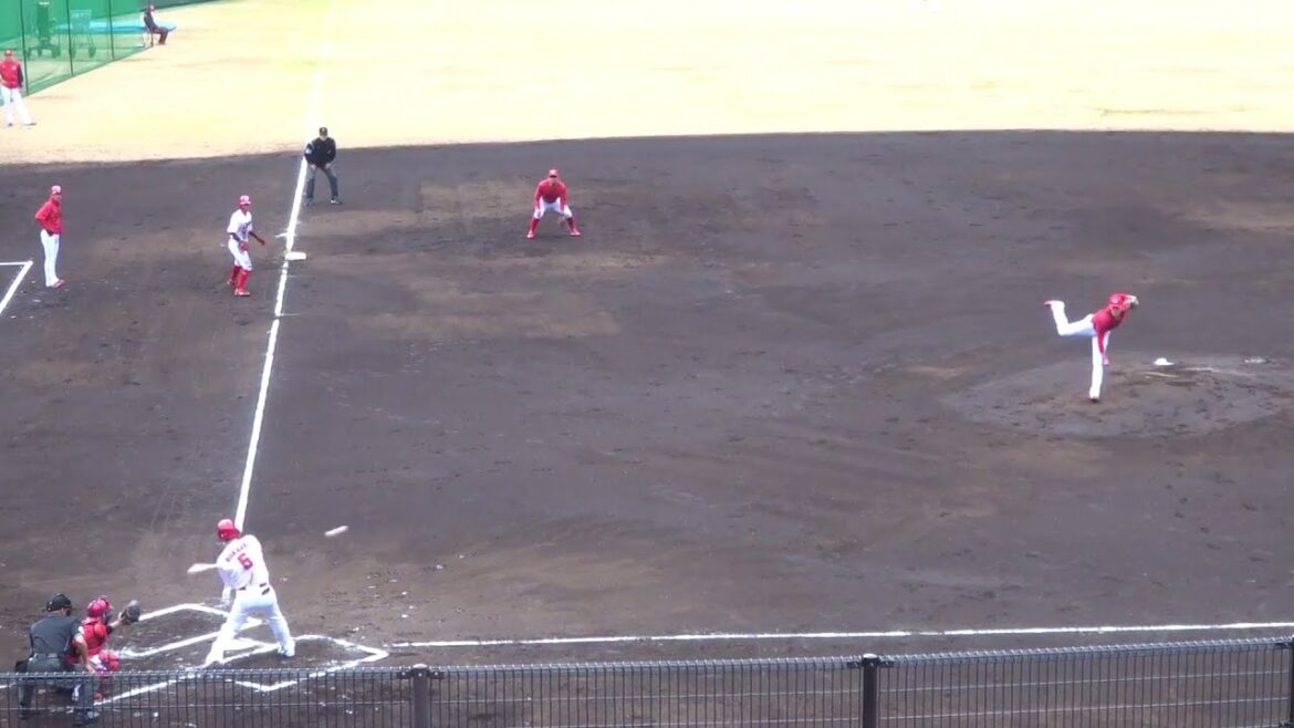 広島カープ紅白戦(2023.02.12) /遠藤淳志投手のピッチング・西川龍馬先制タイムリー