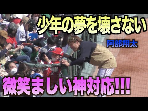 素晴らしい人間性!控えめなカープファンの少年に阿部翔太が笑顔の神対応!#広島#カープ#オリックス#バファローズ