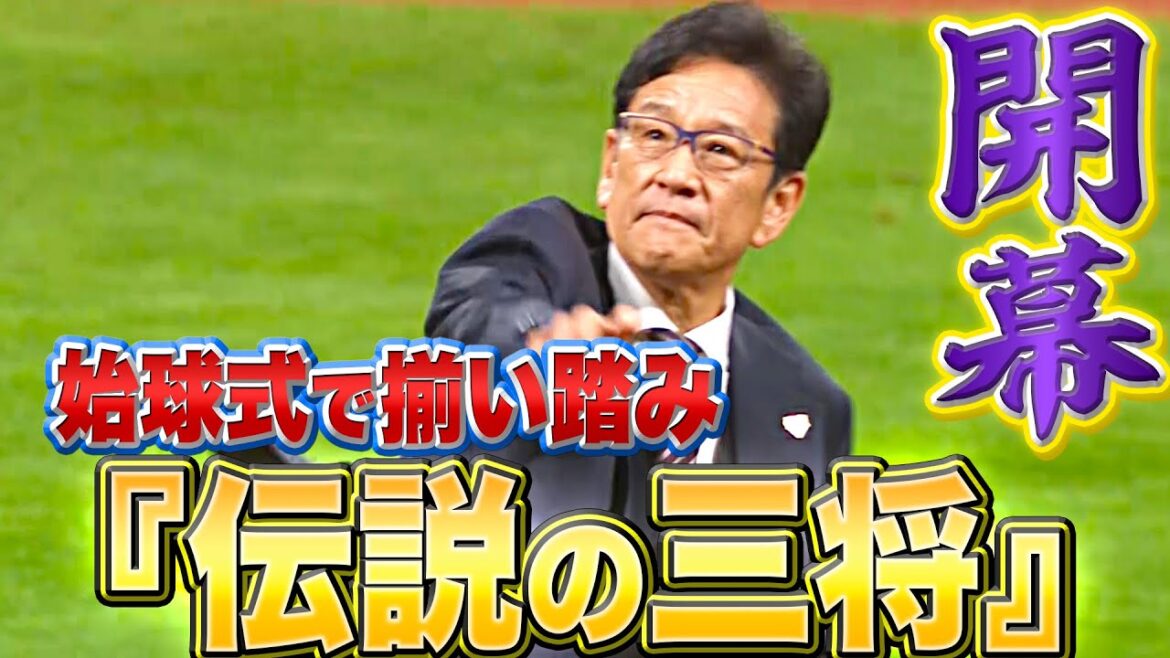 開幕戦の始球式に北海道日本ハムの歴史を築いてきたトレイ・ヒルマン氏、梨田昌孝氏、栗山英樹氏三人の元監督が登場。