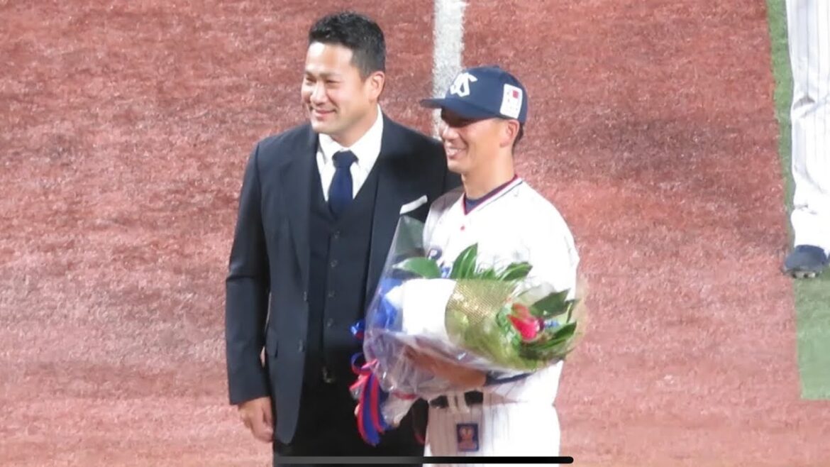 サプライズで田中将大登場!ヤクルトスワローズ 嶋選手、内川選手、坂口選手の引退セレモニー花束贈呈シーン
