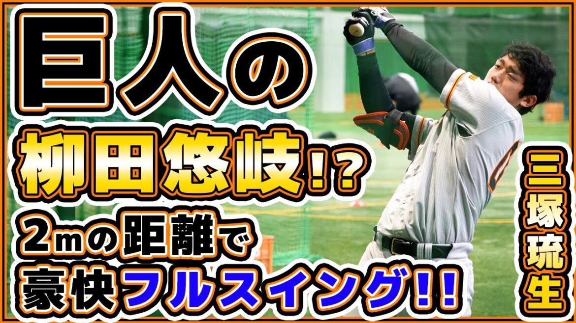 柳田悠岐選手級の衝撃の豪快フルスイングをしている三塚琉生選手を2mの距離から撮影成功!