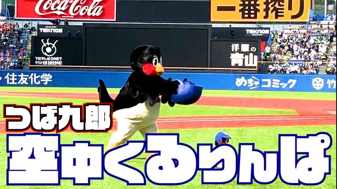 Tokyo-Yakult-Swallows: 風が吹く中での挑戦でした。つば九郎空中くるりんぱ | 2023年4月2日広島戦(神宮球場)