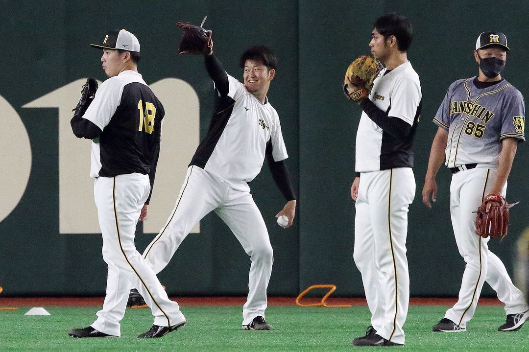 今日も東京ドームでジャイアンツ戦です!試合前練習の様子をお届けします‼︎ #梅野隆太郎 選手#植田海 選手#岩貞祐太 選手#桑原謙太朗 選手#馬場皐輔 選手#福原忍 コーチ#佐藤輝明 選手#小野泰己 選手#阪神タイガース #挑超頂 Hanshin TigersHanshin Tigers Official MediaNPB Central LeagueOfficial Media佐藤輝明小野泰己岩貞祐太挑超頂桑原謙太朗梅野隆太郎植田海福原忍阪神タイガース馬場皐輔 NPBHUB.COM | The Fanbase of Nippon Baseball & Nippon Professional Baseball