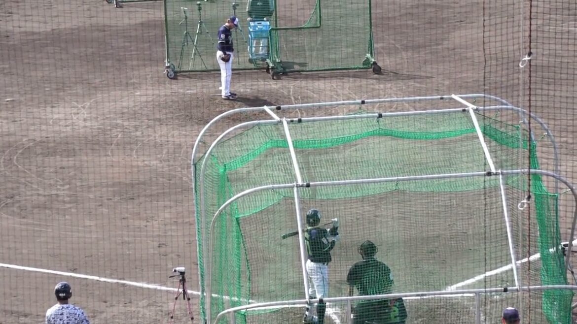 キャンプ中 ライブBPで登板するD.ピーターズ投手、打席に立つ赤羽由紘選手(東京ヤクルトスワローズ)。