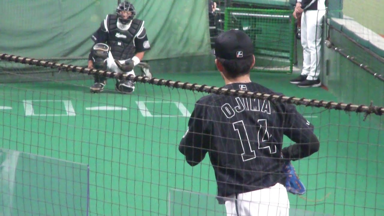 千葉ロッテマリーンズ 小島和哉が試合開始前にブルペンで投球練習をしている映像。2022年4月19日(火) ベルーナドーム、西武 vs ロッテ。