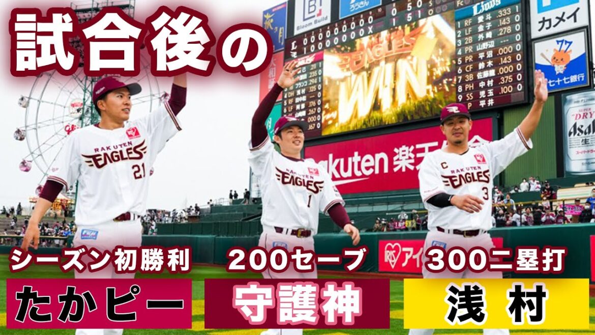 楽天モバイルパーク宮城で行われた埼玉西武戦、1-0で本拠地初勝利!先発で6回1失点の好投、2023シーズン初勝利を挙げた早川隆久選手、300二塁打を達成した浅村栄斗選手、史上最年少で松井裕樹選手の3選手にインタビューをさせていただきました。
