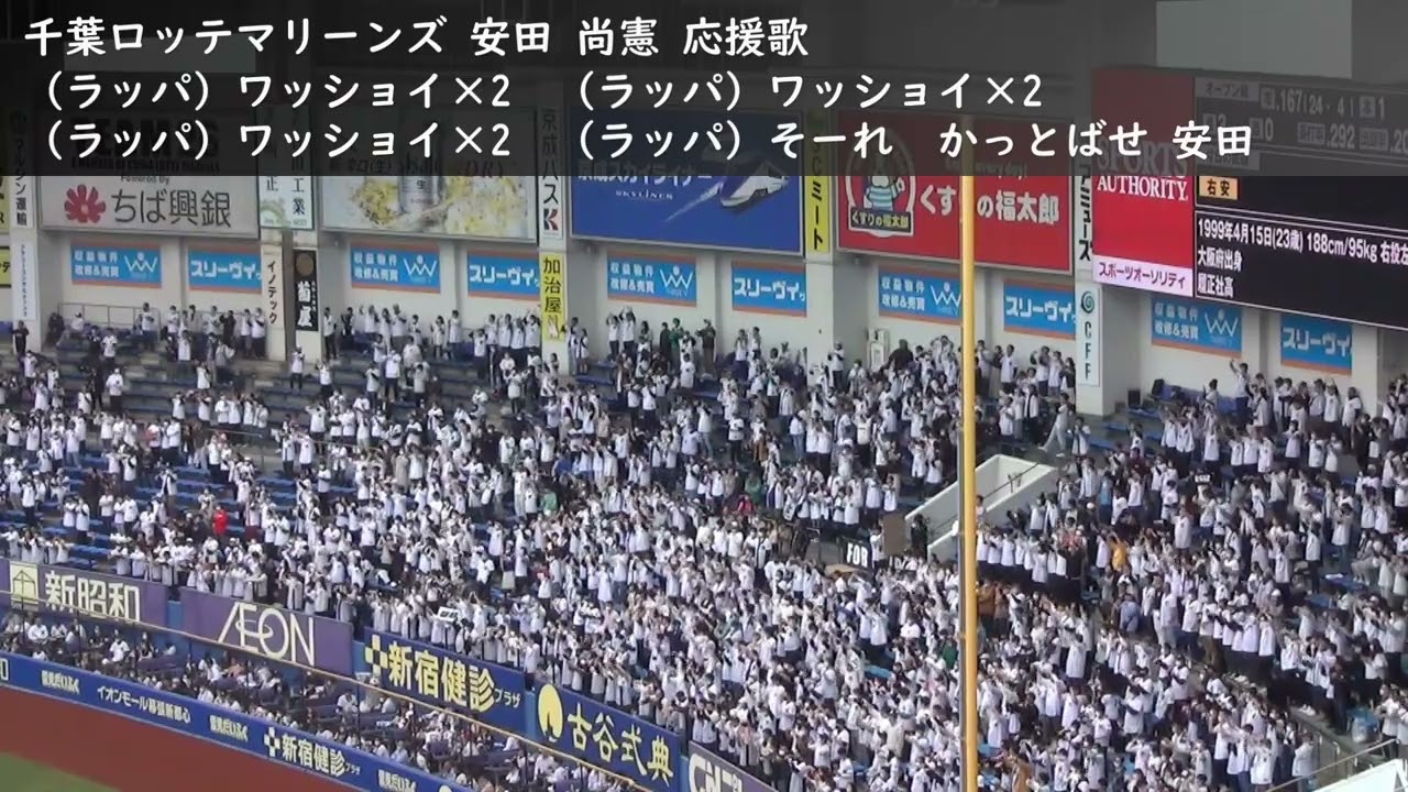 #安田尚憲 #千葉ロッテマリーンズ #応援歌 2023年3月21日 第二打席 新応援歌が発表されてから初めての試合の応援歌です。 第一打席は初球攻撃で応援歌が途中で終ってしまったので、ちゃんと演奏された最初の打席となります。 (ラッパ)ワッショイ×2 (ラッパ)ワッショイ×2 (ラッパ)ワッショイ×2 (ラッパ)そーれ かっとばせ安田 #プロ野球Chiba Lotte Marinesマリーンズマリーンズ応援歌ロッテロッテ応援歌千葉ロッテ千葉ロッテマリーンズ安田尚憲応援歌野球 NPBHUB.COM | The Fanbase of Nippon Baseball & Nippon Professional Baseball