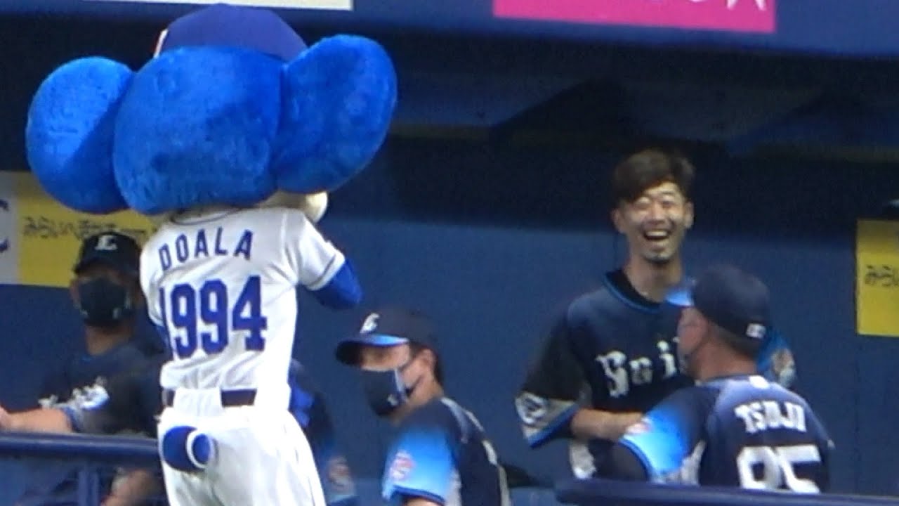 3週間ぶりに再会してイチャつくドアラと辻監督、それを笑顔で見ている外崎 (2021/08/08)
