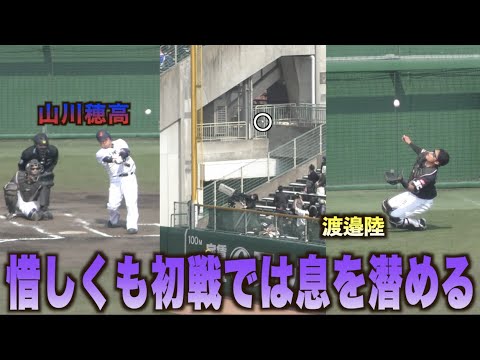あと少しで…惜しくも本塁打に届かず渡邉陸の好捕に仕留められてしまう山川穂高#侍ジャパン#日本代表#キャンプ#WBC