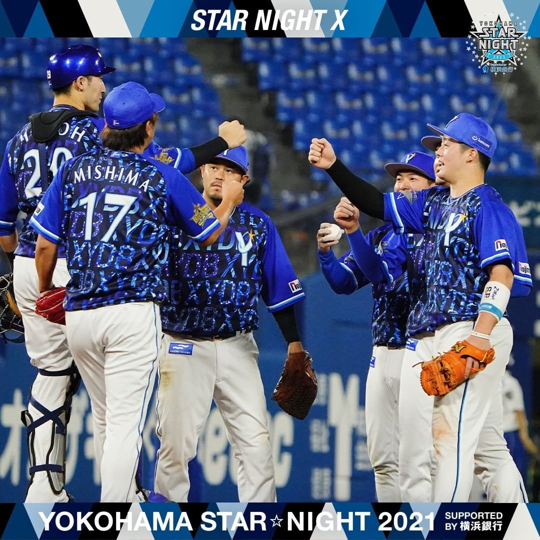 .『YOKOHAMA STAR☆NIGHT 2021 Supported by 横浜銀行』先発 #大貫晋一 選手が6回を1失点と好投!その後も #エスコバー #山﨑康晃 #三嶋一輝 の3投手でつなぎリードを守った!打線も初回から #宮﨑敏郎 選手 #牧秀悟 選手の連続タイムリーで2点を先制すると、4回と5回にもゴロ間に加点し大貫選手を援護。投打がかみ合い、スターナイト2連勝!!.#スターナイト#baystars baystarsNPB Central LeagueOfficial MediaYOKOHAMA DeNA BAYSTARSYOKOHAMA DeNA BAYSTARS Official Mediaエスコバースターナイト三嶋一輝大貫晋一宮﨑敏郎山﨑康晃横浜DeNAベイスターズ牧秀悟 NPBHUB.COM | The Fanbase of Nippon Baseball & Nippon Professional Baseball