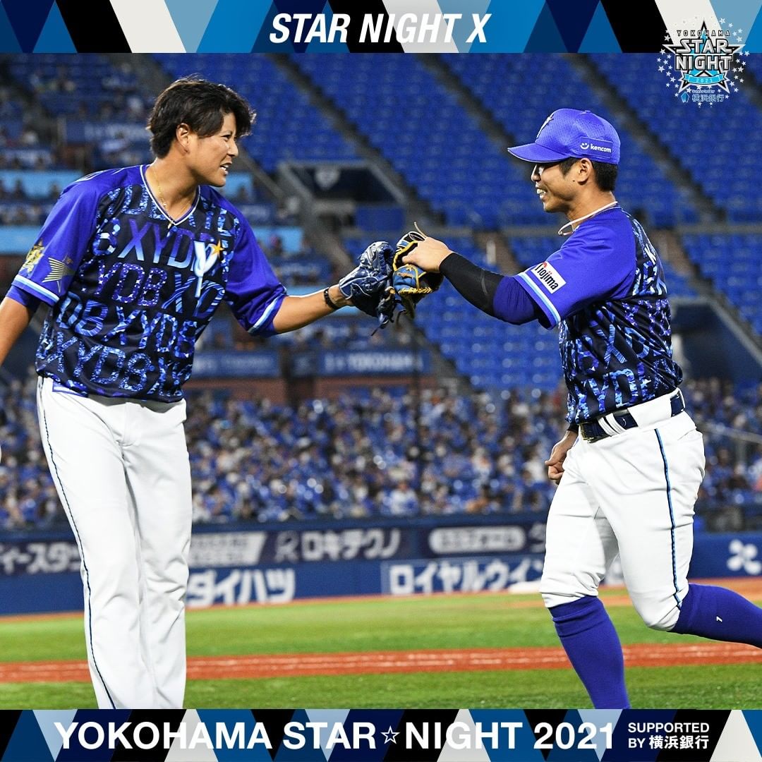 .『YOKOHAMA STAR☆NIGHT 2021 Supported by 横浜銀行』移籍後初登板初先発の #宮國椋丞 選手が古巣のジャイアンツ相手に5回を2失点の好投!打線も1点を追う5回に #宮﨑敏郎 選手のタイムリー2ベースで同点に追いつくと、#ソト 選手にも勝ち越し2点タイムリー、#山本祐大 選手のスクイズ、代打 #楠本泰史 選手の3ランで一挙7得点!!大量点で宮國選手を援護した。スターナイト初戦白星スタート⭐️.#スターナイト#baystars baystarsNPB Central LeagueOfficial MediaYOKOHAMA DeNA BAYSTARSYOKOHAMA DeNA BAYSTARS Official Mediaスターナイトソト宮國椋丞宮﨑敏郎山本祐大楠本泰史横浜DeNAベイスターズ NPBHUB.COM | The Fanbase of Nippon Baseball & Nippon Professional Baseball