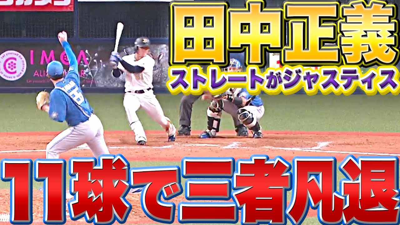 低めに伸びていく、まるで地を這うかのようなストレートがジャスティスすぎる。北海道日本ハム・田中正義がジャスティスすぎる。短いイニングに全力投球が合っているようで、打たれる気がしない。わずか11球で3者凡退に抑え込んだ!!