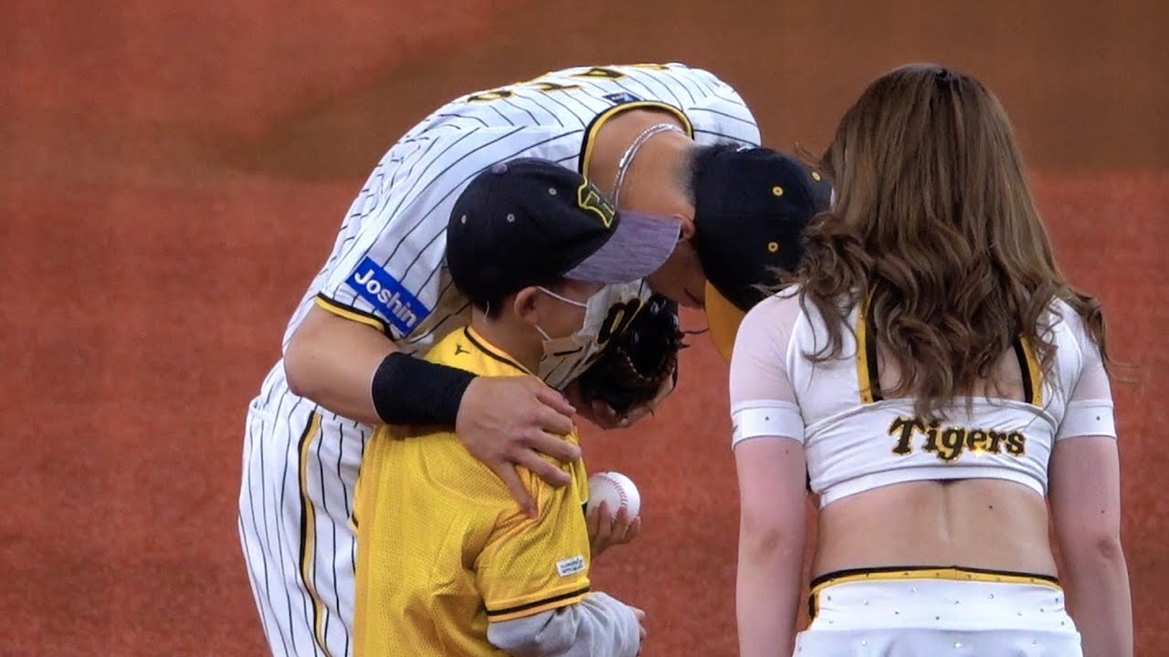 サインボールだけでなく少年と会話する佐藤輝明の神対応!チアも聞き耳を立ててる?阪神タイガース 試合前イベント 2023/04/02