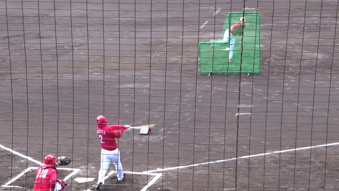 打撃投手:矢崎拓也投手 vs 中神拓都 → 田中広輔 → 安部友裕 → 三好匠 → 磯村嘉孝 → 田村俊介選手のフリーバッティング ~広島東洋カープ2軍・春季日南キャンプ2022~