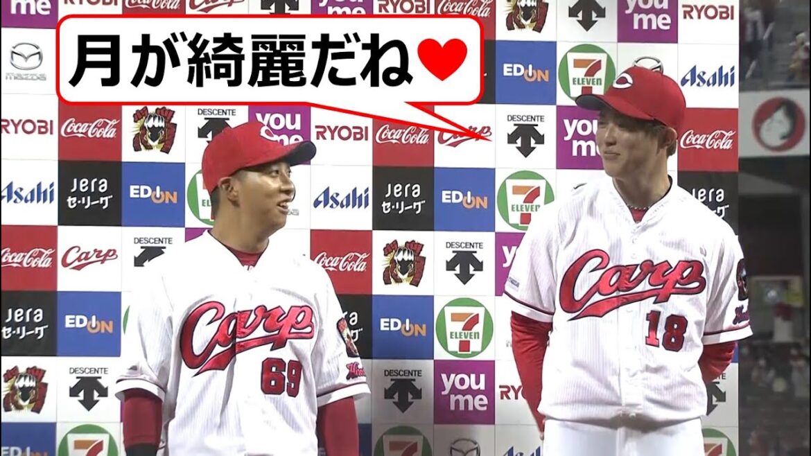 お立ち台に上がったのは、8回3安打1失点で今季3勝目をあげた森下暢仁投手と、3安打3打点でプロ初の猛打賞を獲得した羽月隆太郎選手。