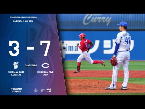 YOKOHAMA-DeNA-BAYSTARS: 2021.4.3ハイライト【DeNA vs 広島】中盤 牧秀悟選手がタイムリーヒットを放ち反撃の兆しを見せるも、その後追加点を許し敗戦を喫する