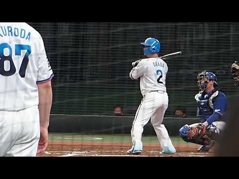 この日スタメンマスクをかぶった岡田雅利の第1打席。