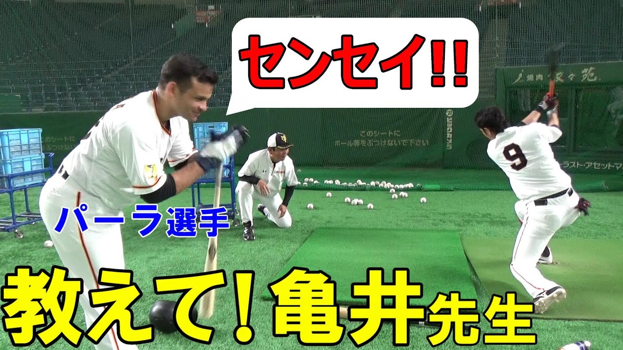 パーラ選手が亀井善行選手に打撃について質問していました。研究熱心なパーラ選手は亀井選手のことを「先生」と呼んで慕っています。