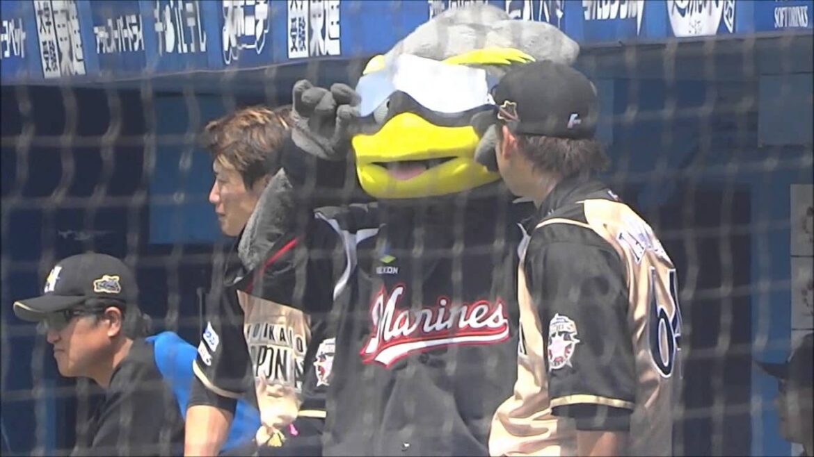 試合前の谷口雄也とロッテマスコット(ズーちゃん,COOL)の交流。お腹に谷口くんのタオルを隠し持っていたズーちゃん。本人に見せてハグ( ^ω^ )