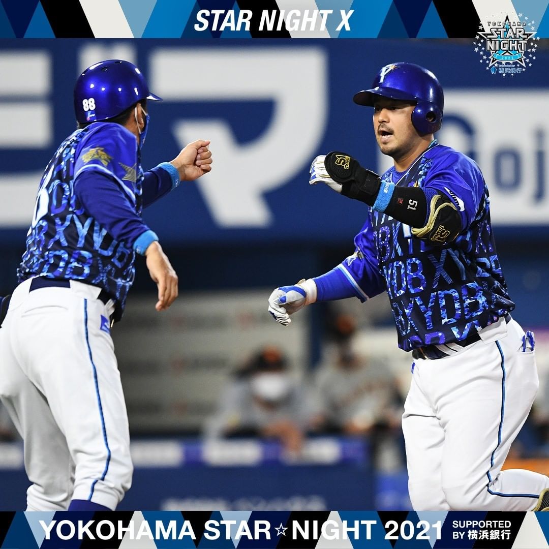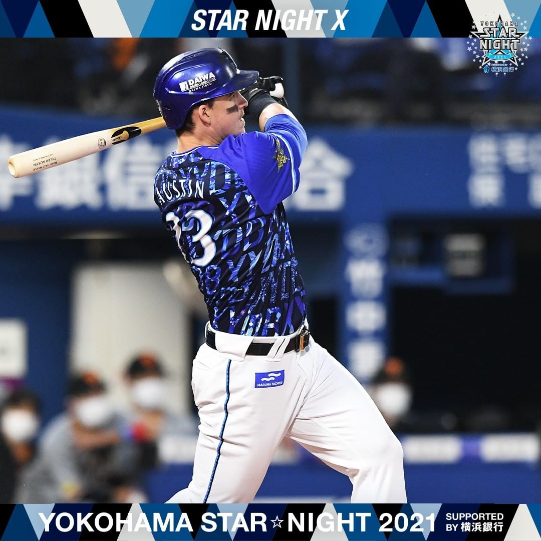 .『YOKOHAMA STAR☆NIGHT 2021 Supported by 横浜銀行』先発 #坂本裕哉 選手が要所を締め、5回を2失点(自責0)に抑える好投。打線も初回から #オースティン 選手 #宮﨑敏郎 選手の連続HRで3点を先制すると、1点差で迎えた8回にも #戸柱恭孝 選手の2点タイムリー2ベースで点差を広げる。しかし3点差の9回に同点に追いつかれ引き分け。スターナイト3連勝ならず、、.#スターナイト#baystars baystarsNPB Central LeagueOfficial MediaYOKOHAMA DeNA BAYSTARSYOKOHAMA DeNA BAYSTARS Official Mediaオースティンスターナイト坂本裕哉宮﨑敏郎戸柱恭孝横浜DeNAベイスターズ NPBHUB.COM | The Fanbase of Nippon Baseball & Nippon Professional Baseball
