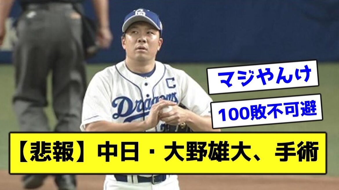 【終戦】中日・大野雄大、手術【なんJ反応】