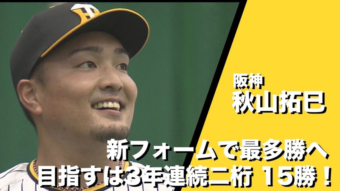 沖縄・宜野座キャンプでは第3クールがスタート。この日は、昨シーズン自身初の2年連続2ケタ勝利をマークした13年目の秋山拓巳投手が1日キャプテンを務めました。自身のウェア背中部分に書いた言葉は「カネの雨を降らせましょう」。練習開始前の声出しの際に、“レインメーカー”の異名をもつ新日本プロレスのエースレスラー、オカダ・カズチカの言葉を借りて、関西に、そして日本にカネの雨を降らせることを誓いました。なぜこの言葉を選んだのか、その理由について、「昔からオカダ・カズチカさんに似ていると言われてたんで。」「今までのキャプテンが結構真面目な感じで喋ってたんで、ちょっと柔らかい感じで行きたかったんで入れてみたんですけど、全然ウケが良くなかったです。20代にはまだ早かったかな。」と、ジェネレーションギャップを感じていました。