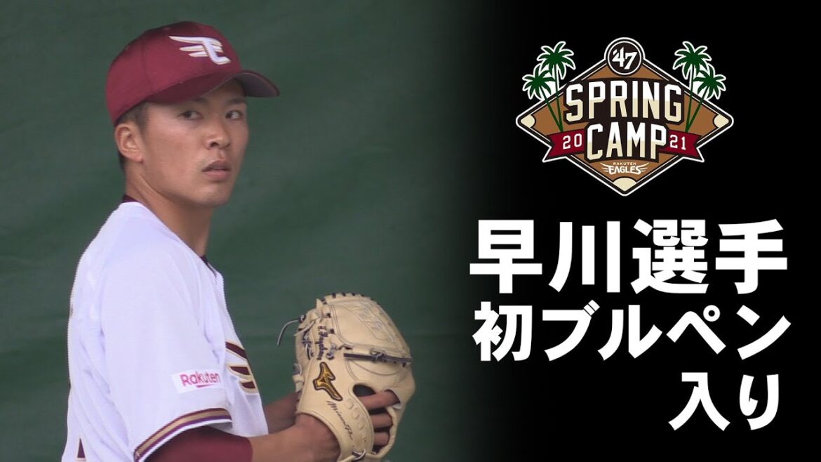 早川隆久選手が初のブルペン入り。主力選手も見学するほど注目の高さが伺えましたが、緊張の様子で37球を投げました。