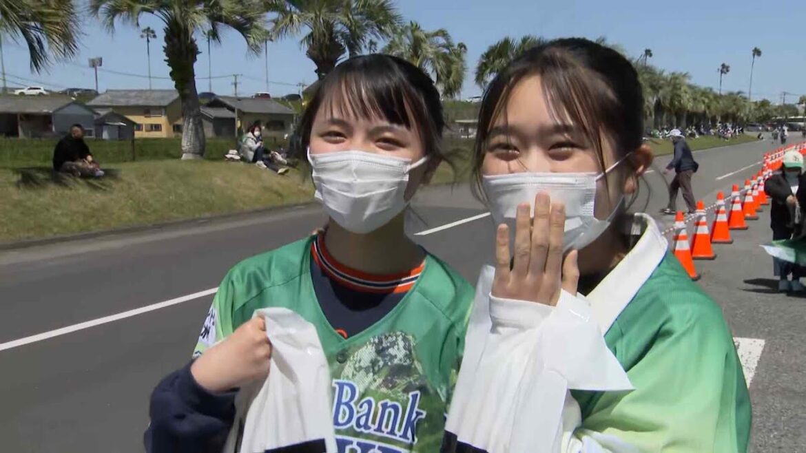 「ファイト九州デー」として行われた宮崎での一戦、入場者には記念のユニフォームが無料で配られました。去年は雨で試合が中止となったため、宮崎でホークスの公式戦が開かれるのは2年ぶり。待望の開催に、試合前からテンションMAXの女子高校生も・・・