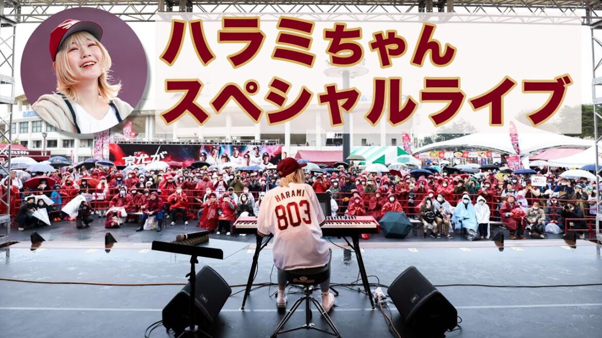 この試合で、始球式と試合後のフィールドライブを行っていただく予定だったポップスピアニストの「ハラミちゃん」が、集まってくれたファンのために試合中止後急遽ステージで