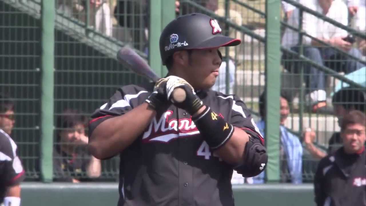 前日の紅白戦でランニングホームランを記録した「幕張のアジャ」ことルーキーの井上晴哉が、この日も魅せた。上野投手の初球を、やや詰まりぎみながらレフトスタンドに放り込み、2試合連続となるホームラン。さらに次の打席でもライトに弾き返すタイムリーを放った。ルーキーらしからぬ豪快な打撃で、伊東監督に猛烈アピールした。(2月13日 千葉ロッテ) 0212201402122014年2月12日2号パ・リーグChiba Lotte MarinesHRキャンプパシフィックリーグホームランマリーンズロッテ井上晴哉千葉千葉ロッテマリーンズ石垣島紅白戦 NPBHUB.COM | The Fanbase of Nippon Baseball & Nippon Professional Baseball