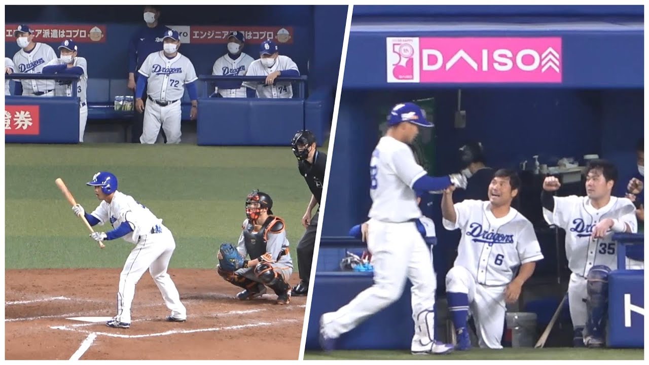 7対6と中日1点リードの5回表一死から大島が中安で出塁。山本に代わって代打石橋(投手:高橋)