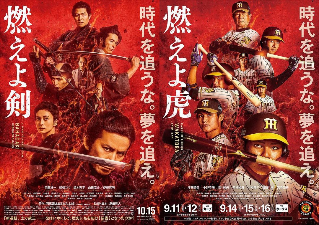 10/15公開予定の映画「燃えよ剣」とタイガースの平田ファーム監督と若虎選手がタイアップし、コラボビジュアルが制作されました!