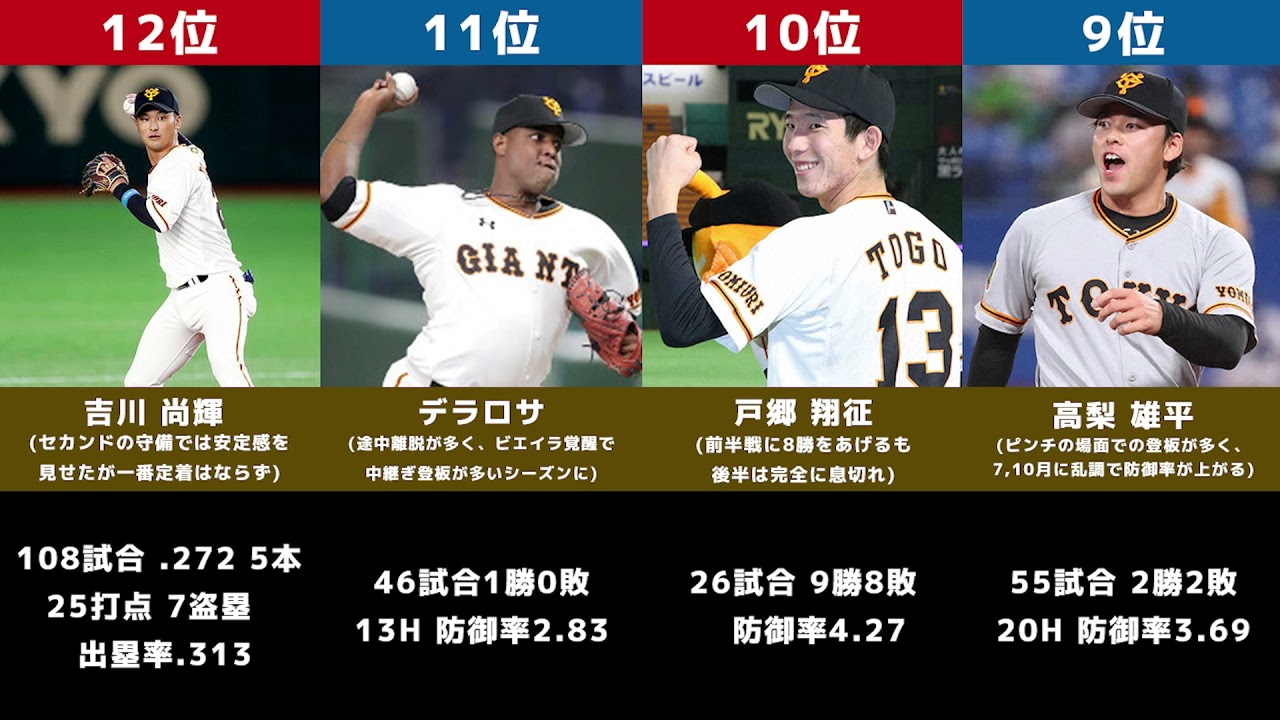 #巨人 #MVP #2021 序盤は坂本の怪我、丸の不振、ウィーラー好調、梶谷、テームズの怪我、スモークの帰国、山口の獲得、中田のトレードなど でチーム状態がさほど良い訳ではありませんでしたが、高橋の台頭、戸郷との2本柱で前半戦を乗り切りましたが、後半戦は失速しまさかの10連敗も経験、先発投手陣のスタミナ不足が顕著なシーズンでした。 Yomiuri Giantsテームズ 野球読売ジャイアンツ NPBHUB.COM | The Fanbase of Nippon Baseball & Nippon Professional Baseball