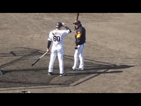 2020年巨人春季宮崎キャンプ、ドラ3菊田選手が初シート打撃で左右に長打連発、村田コーチは強く触れるのが魅力と絶賛、遠くに飛ばす能力はすでに1軍レベルか。