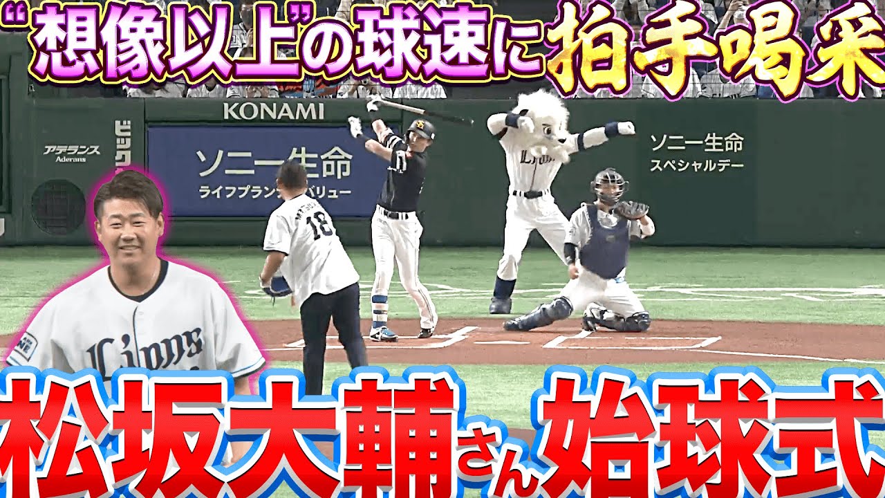 東京ドームでの埼玉西武主催試合。試合前には両チームともに在籍した松坂大輔さんによる始球式が行われました!! 引退時には怪我に悩まされていたとのことだったが、想像以上の球速には球場全体から拍手喝采。さすがです。