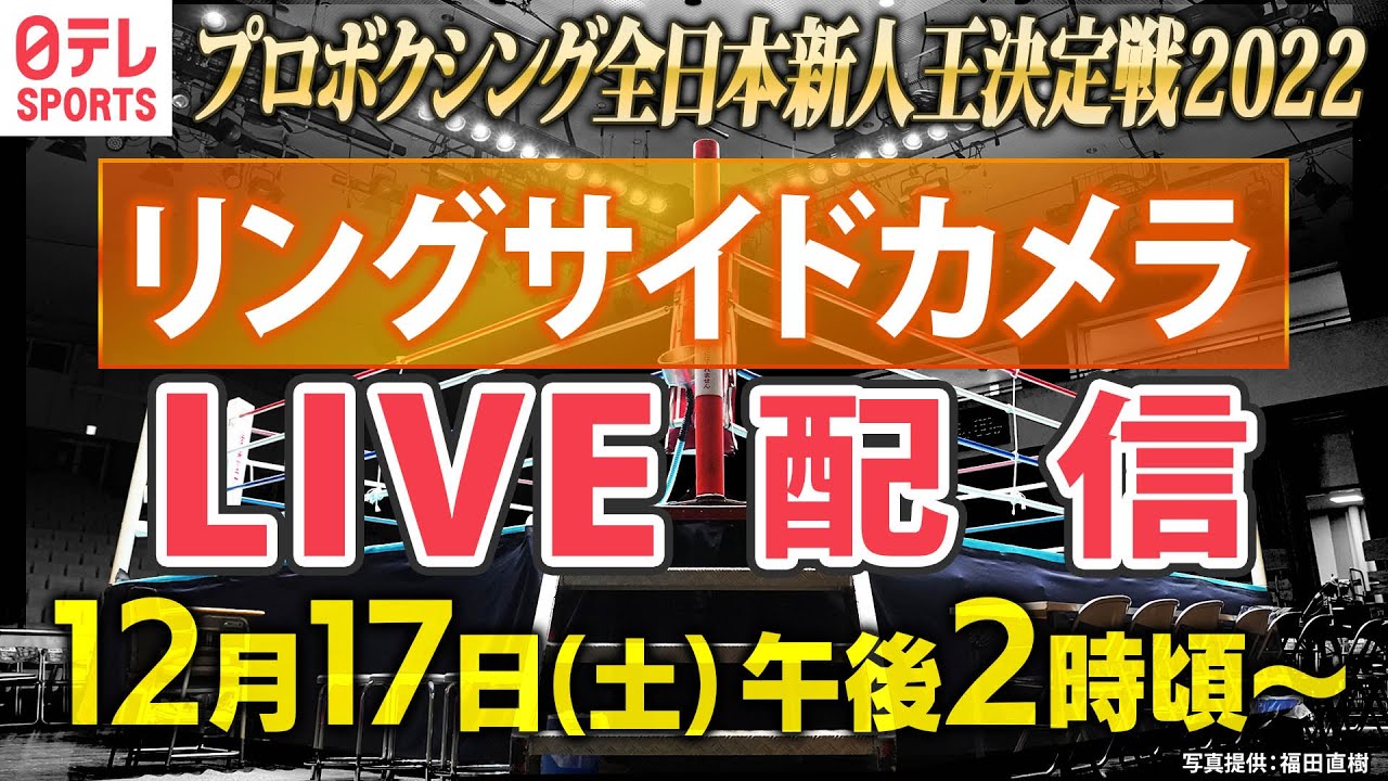 12月17日(土) ごご2時~ プロボクシング全日本新人王決勝戦 2022をCS放送・日テレジータスにて生中継!日テレスポーツ【公式】YouTubeでは、リング脇に特別に設置した「リングサイドカメラ」をライブ配信。迫力の映像でお楽しみください!