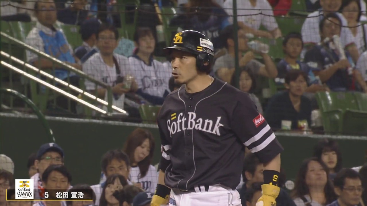 1塁ランナー・福岡ソフトバンク・松田宣浩が、内川聖一のセンター前に落ちた打球に対し一気に3塁を陥れる!! 連日の『アツアツ走塁』!!