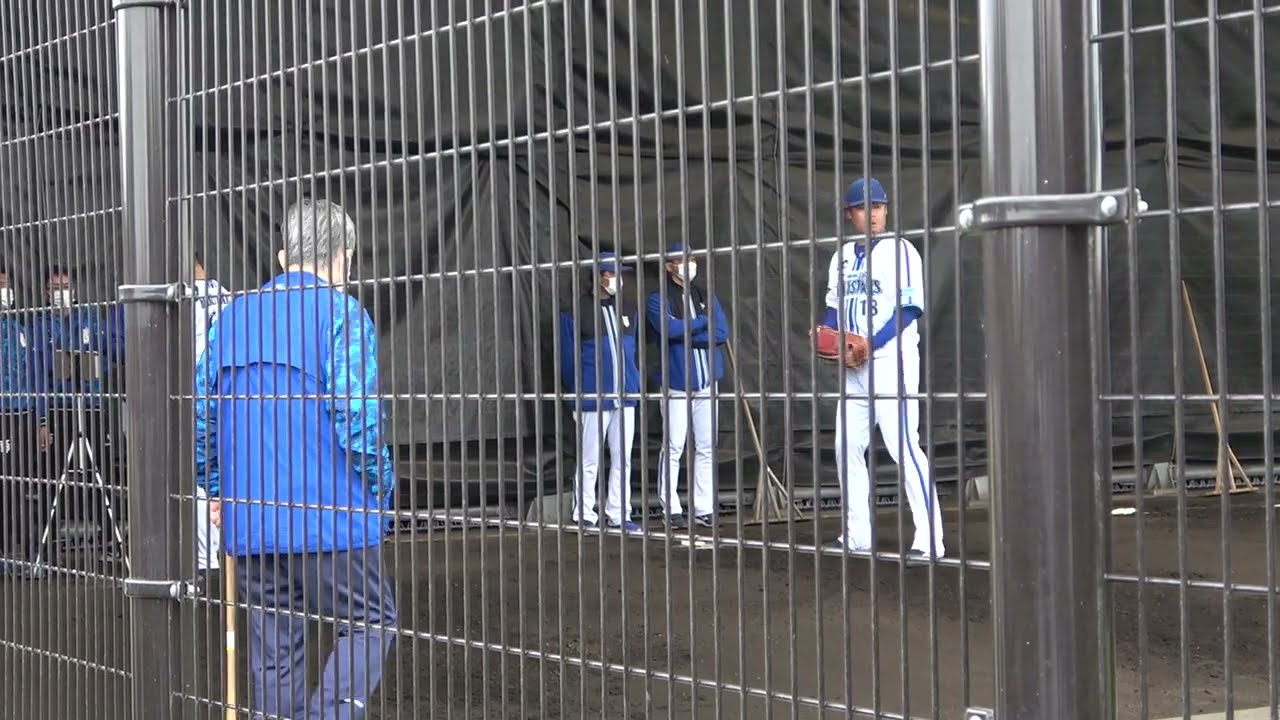 伊勢大夢のピッチングを見守る小谷コーチ 沖縄キャンプ 横浜DeNAベイスターズ 2023/2/5