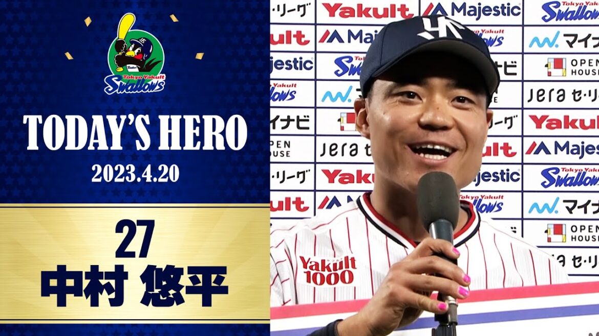 Tokyo-Yakult-Swallows: 【ヒーローインタビュー】サヨナラタイムリーで勝利に導いた中村悠平選手 | 4月20日 東京ヤクルトスワローズvs中日ドラゴンズ(神宮球場)