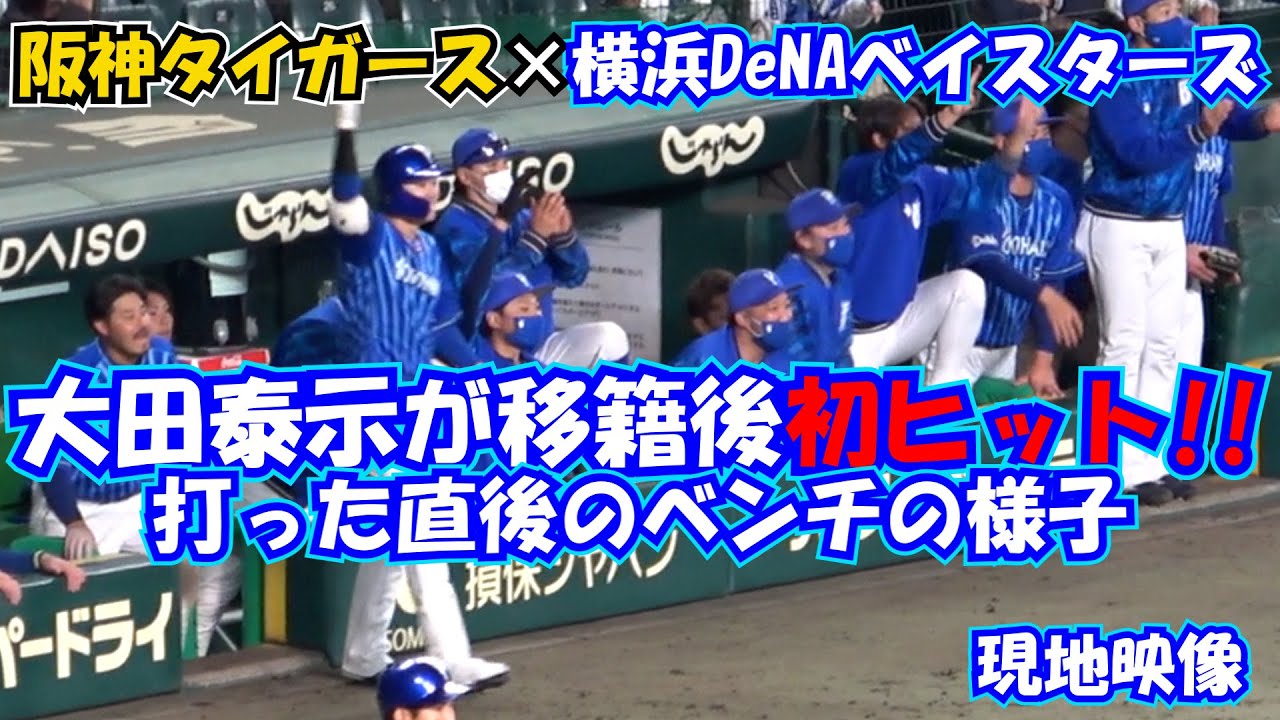 【横浜DeNAベイスターズ】阪神戦 大田泰示が移籍後初ヒット打った時のベンチの様子 現地映像