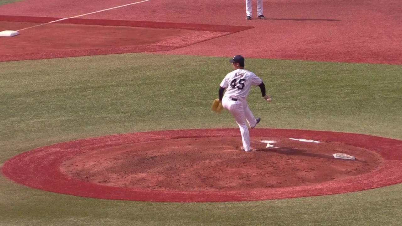 土肥の投球フォーム。投げる右腕の動きがなんか特徴的に思いましたねー