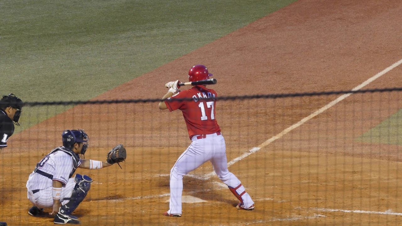 広島東洋カープ 岡田明丈 バッティングフォーム&バッティング(スローモーション)【2点タイムリーツーベースヒット】
