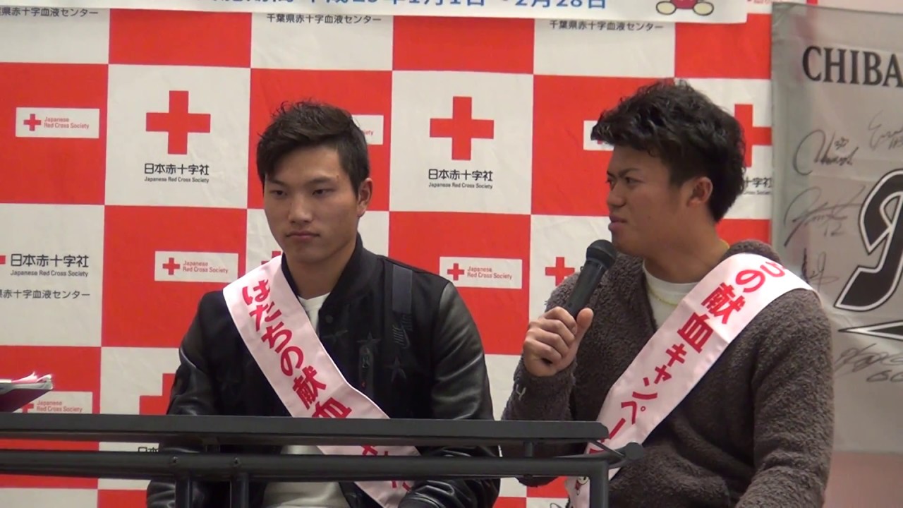 はたちの献血トークショーは千葉ロッテマリーンズの脇本直人(健大高崎)と岩下大輝(星稜出身)の二人。